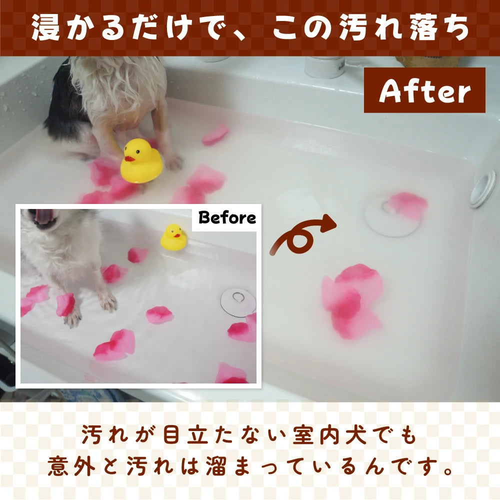 犬の温泉を使用した入浴だけでも簡単な汚れやニオイを洗い流すことができます。